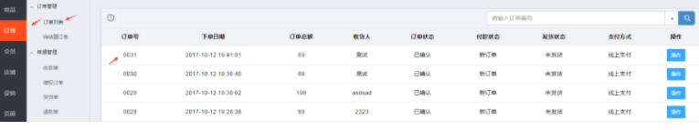 输入帐号密码和验证码之后,点击登录之后,点击后台订单菜单中的订单列表,里面可以显示所有下单成功的订单