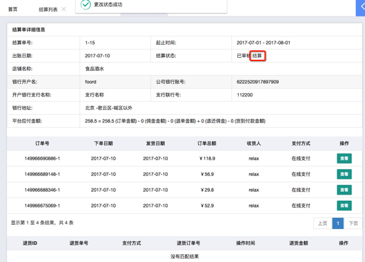 1、结算列表-》查看-》进入“账单列表”-》查看-》结算单详细
