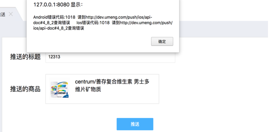 参数配置完后来到 后台->设置->网店设置->App推送,根据下图所示,填写推送的标题和商品,选择完后点击推送,然后会出现结果,推送失败的话会提示错误并给出相应的解决方案,提示推送成功,就是推送完成了,静静等待十几秒就可以收到推送了