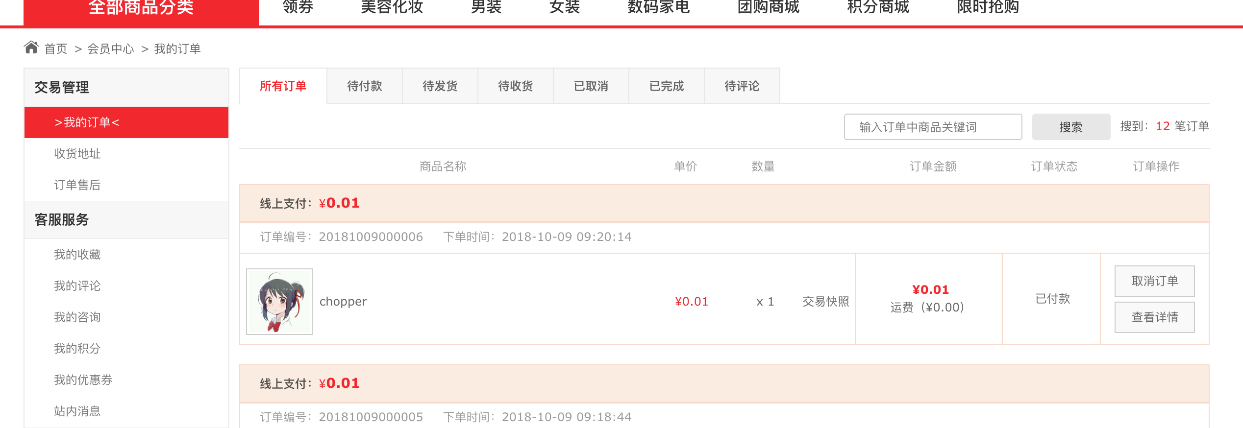 会员订单操作