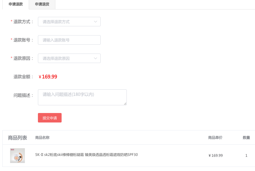 如果未货到付款,需要在确认收货以后,点击申请售后,选择申请退款,选择退款方式,输入退款账号、退款原因、问题描述后,提交申请。