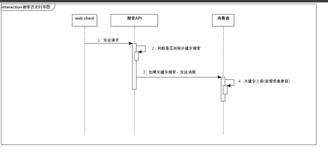1.用户搜索商品,API判断是否为关键字搜索,如果是关键字搜索,则发送搜索消息