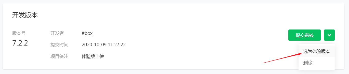 点击版本管理,找到上传的小程序,提交审核,设置页面路径后扫描二维码即可
