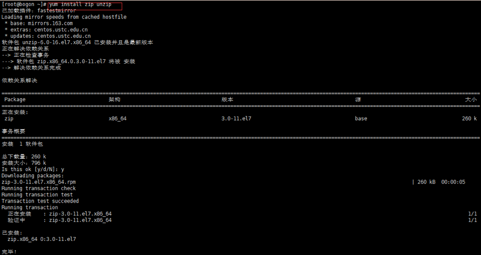 2、最小化安装是没有zip和unzip命令的,所以需要安装,安装命令