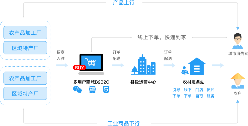 双向O2O式电商解决方案,农场品上行,工业品下行